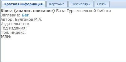 В закладке "Экземпляры" представлена информация о количестве экземпляров,