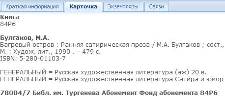 В закладке "Биб. описание", помимо прочего, можно узнать шифр, место хранения, рубрики